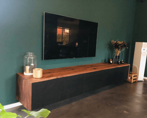 Natuurlijk kun je kiezen uit verschillende houtsoorten en zijn de mogelijkheden groot. De meeste maatwerkprojecten zijn van Eikenhout, (Amerikaans) Notenhout, Iepenhout en Kastanjehout. Ook werk ik regelmatig met hoogwaardig plaatmateriaal met een laag echt houtfineer. Dit geeft de uitstraling van echt hout, met de voordelen van plaatmateriaal (het hout ‘werkt’ niet, het is gemakkelijker te vervaardigen en is iets voordeliger dan massief hout).